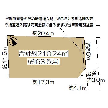| 接道 | 南東 3m(幅員) 公道 6.6m(接面) |