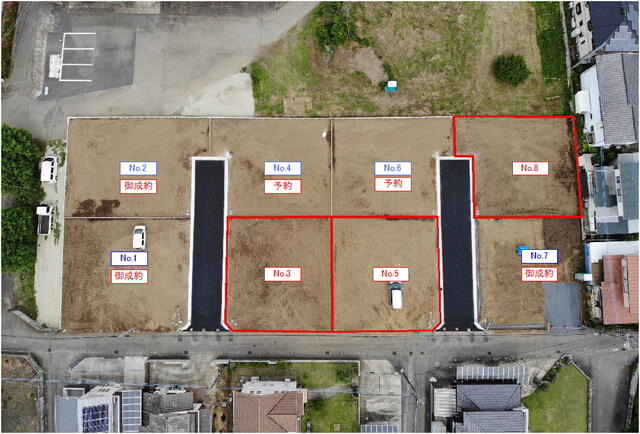 【No8】建築条件なし、公営水道、公共本下水、側溝、プロパンガス、電気 ※上下水道宅地内引込済み:負担金200,000円