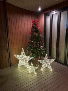 鮮やかな光をまとったクリスマスツリーが迎えてくれました。
