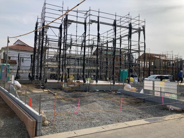 【1号棟】駐車場/公営水道/公共本下水/PG/電気//床下収納庫/洗面化粧台/玄関扉スマートキー/システムキッチン(人造大理石ワークトップ・スライドキャビネット・浄水器付)/1坪UB/WCウォシュレット/手すり(風呂・階段・トイレ)/浴室暖房換気乾燥機/全窓ペアガラス/エコジョーズ給湯器/照明器具(玄関外・ホール・1F廊下・キッチンダウンライト・ユニットバス内)/カラーTVインターホン/シックハウス対策住宅仕様24時間換気システム採用 ※地盤保証会社:ジャパンホームシールド